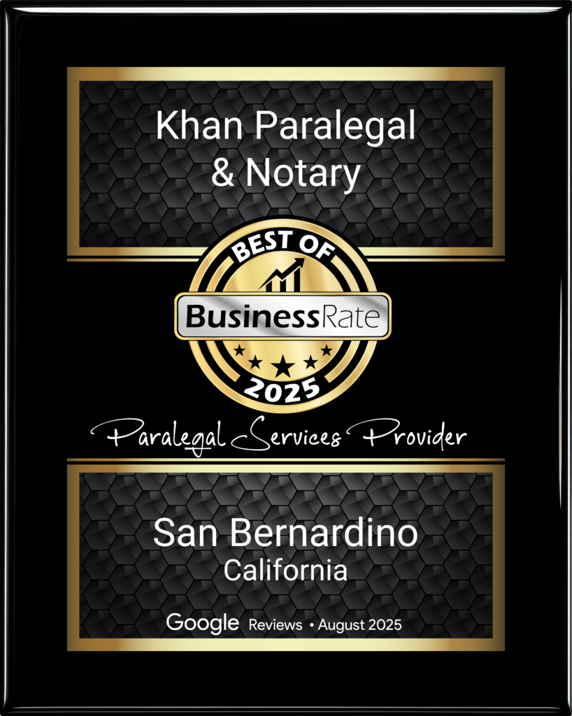 Located in San Bernardino, Khan Paralegal and Notary is proud to serve individuals, families, and legal professionals throughout the region. We believe that quality service builds trust, and trust builds lasting relationships.